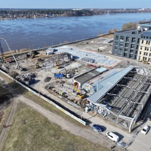The project is gradually taking shape — in a location that until recently was occupied by industrial buildings, a modern and well-organised residential environment is now emerging in close proximity to the Daugava promenade.