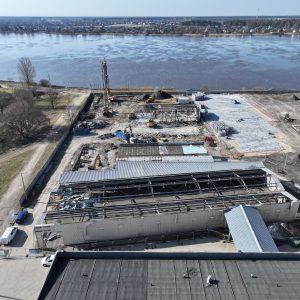 A new phase of development has commenced at the PROMENĀDES MĀJAS project, with the demolition of former warehouse buildings completed and the installation of the first foundation piles now underway.